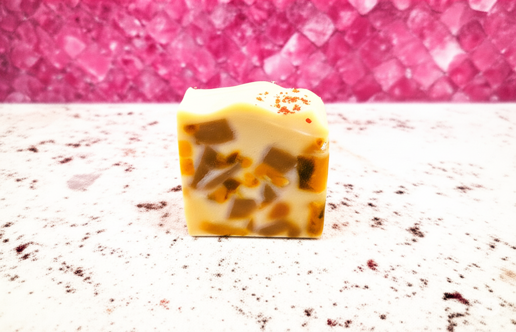 Ingredients: Distilled Water, sodium hydroxide*, Tallow- locally sourced ( home rendered and purified), Organic Virgin Coconut Oil, 100% Pure Grapeseed Oil, High Quality Fragrance Oil, Fair Trade Shea Butter, White Kaolin Clay, Stearic Acid, Castor Oil, Zinc Oxide, mica, grapeseed powder, cranberry powder, goats milk powder.